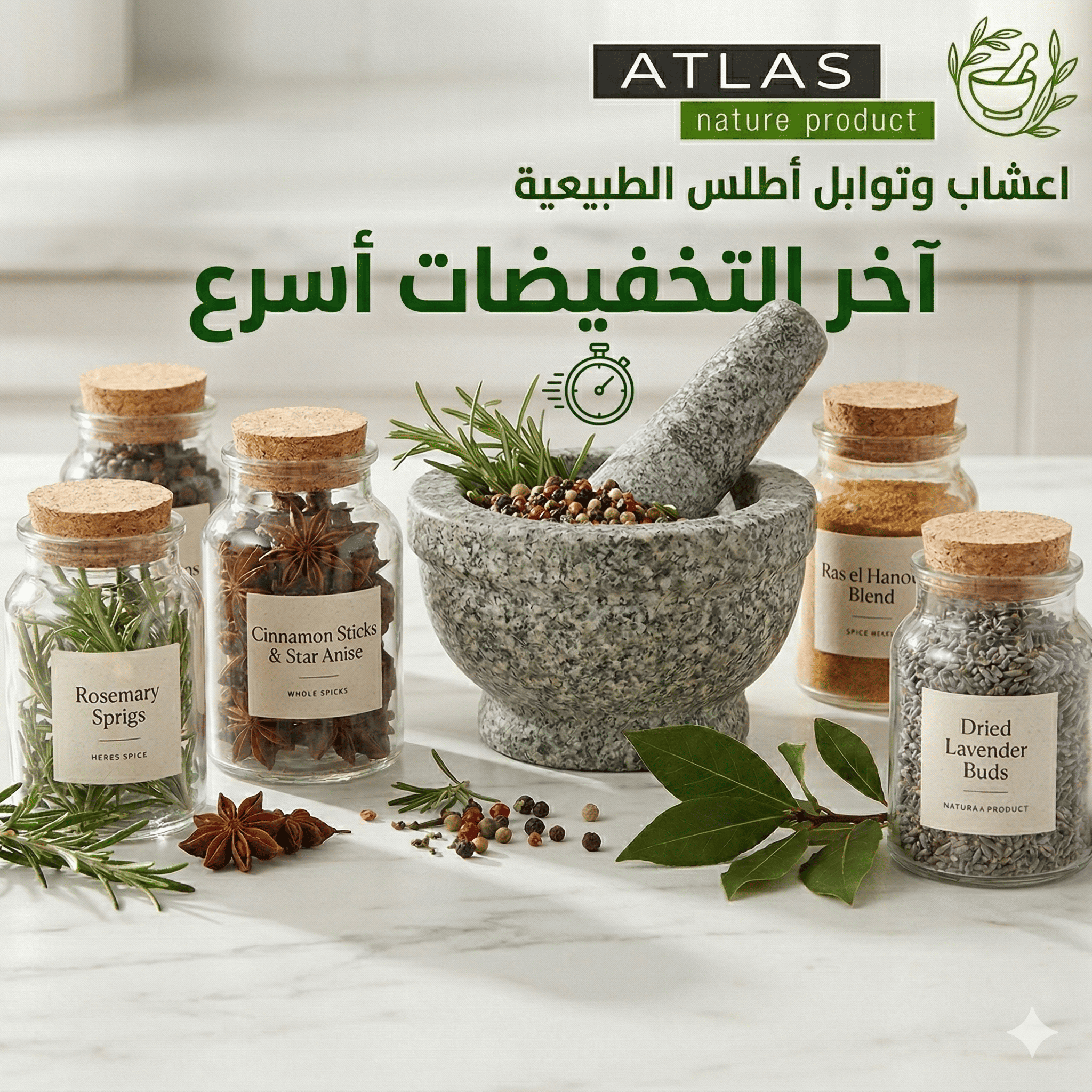 تخفيضات أطلس الكبرى! 🌿 استمتع بخصومات على أفضل التوابل والمكملات الغذائية. الكمية محدودة.. تسوق الآن وجدد حيويتك!